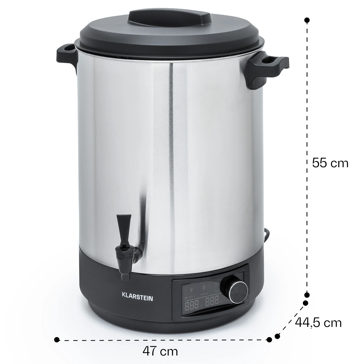 Und mit seinem geschmacksechten und hygienischen Innenleben aus Edelstahl, dem Cool-Touch-Ablasshahn sowie der integrierten Warmhaltefunktion eignet er sich auch vorzüglich als Heißgetränkespender für Tee, Punsch oder Glühwein.