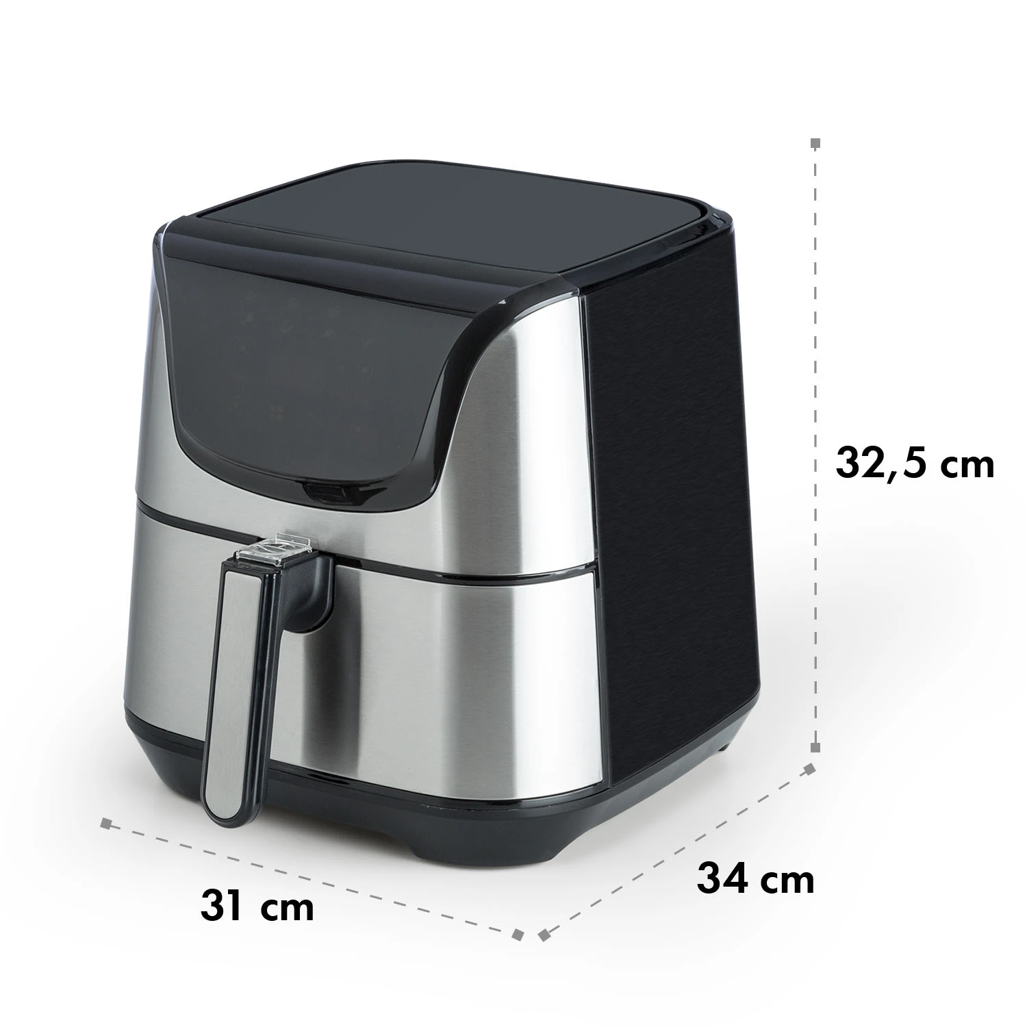 Mit der Klarstein AeroVital Deluxe Heißluftfritteuse gelingt das fettarme Garen von Lebensmitteln schnell und einfach. Durch die zirkulierende Heißluft frittiert, backt, grillt oder röstet die AeroVital Deluxe mit starken 1700 Watt. Dabei wird die Wärme mit der Highspeed-convection-technology schnell und optimal verteilt und gart Lebensmittel von allen Seiten schonend und rasant, ein Auftauen ist dabei nicht nötig.