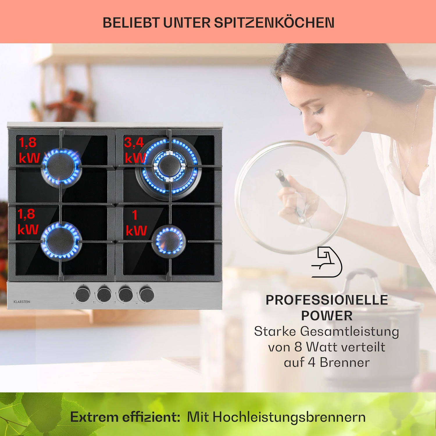 Alchemist 4 Zonen Gaskochfeld Aluminium-Brenner Glaskeramik Schwarz