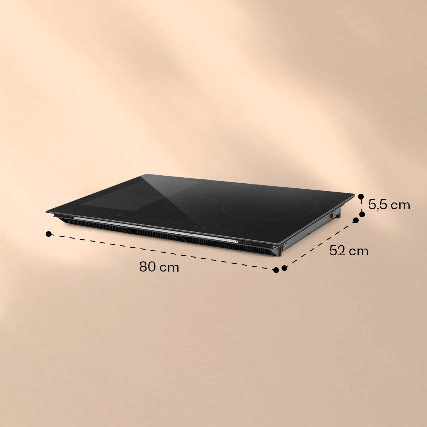- Spar-Funktion: Kochzonen-Leistung wird automatisch reduziert, um Überlast zu vermeiden