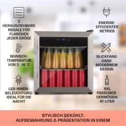 Beersafe XL Kühlschrank 60 Liter 2 Böden Doppelt Isolierte Panoramaglastür Edelstahl