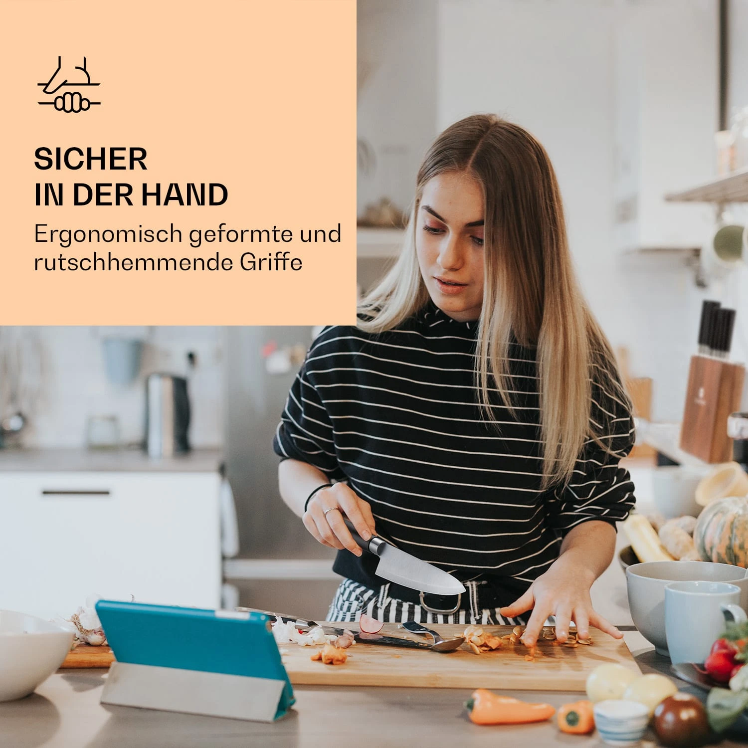 Kitano 8tlg. Messer-Set Mit Block 7 Messer Stahl Edler Holzblock